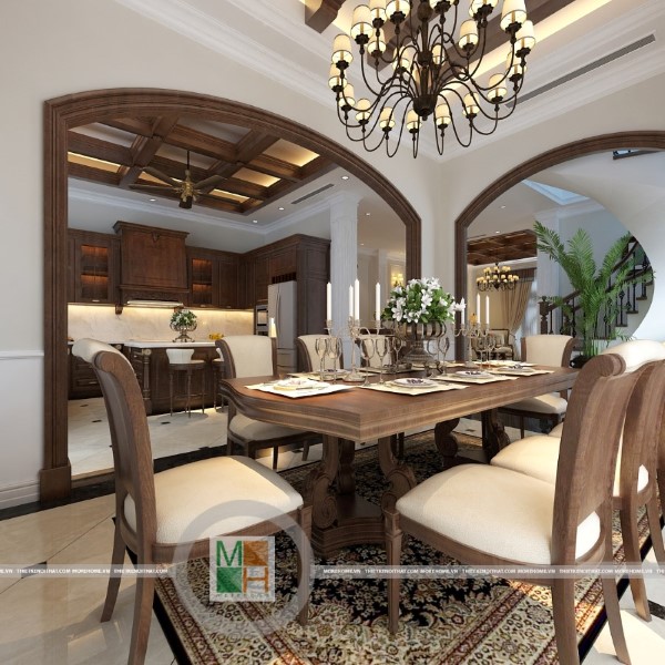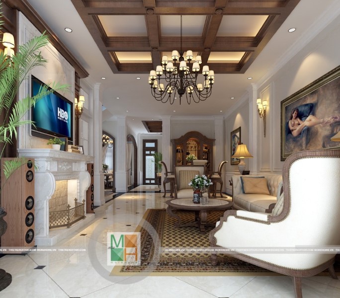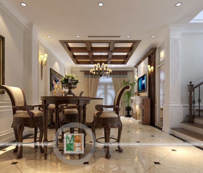 Thiết kế nội thất biệt thự gỗ Việt kết hợp tân cổ điển - Anh Thủy
