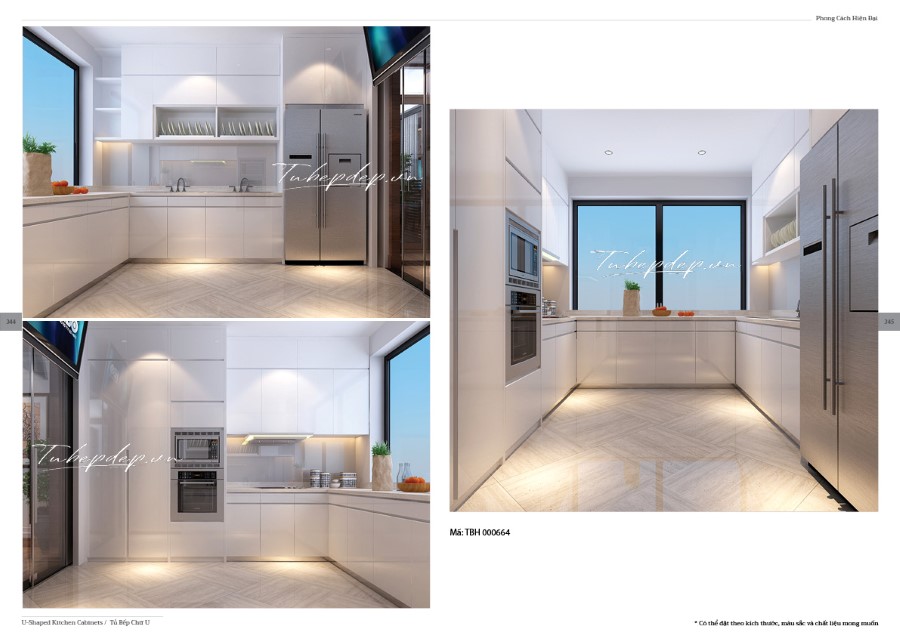 Thiết kế phòng bếp hiện đại, tone màu trắng từ nội thất giúp không gian phòng thoáng đãng và rộng rãi hơn