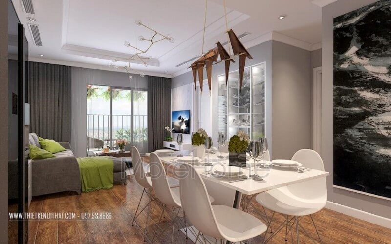 Mẫu thiết kế nội thất phòng ăn chung cư đẹp với bộ bàn ghế ăn đơn giản nhỏ gọn