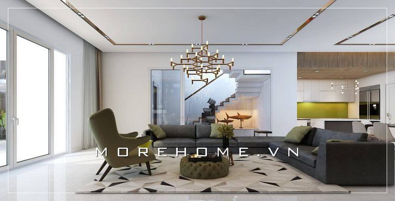 Bộ bàn ghế sofa màu xám được thiết kế mang phong cách hiện đại không chỉ mang đến cảm giác thoải mái khi sử dụng mà còn góp phần tô điểm thêm giá trị thẩm mỹ phía bên ngoài cho căn phòng.