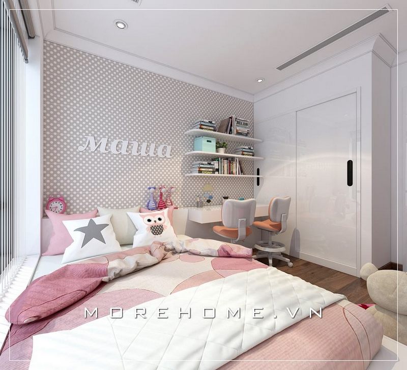 Mẫu thiết kế phòng ngủ con có bàn học đơn giản với nội thất gỗ công nghiệp An Cường cho chung cư, nhà phố