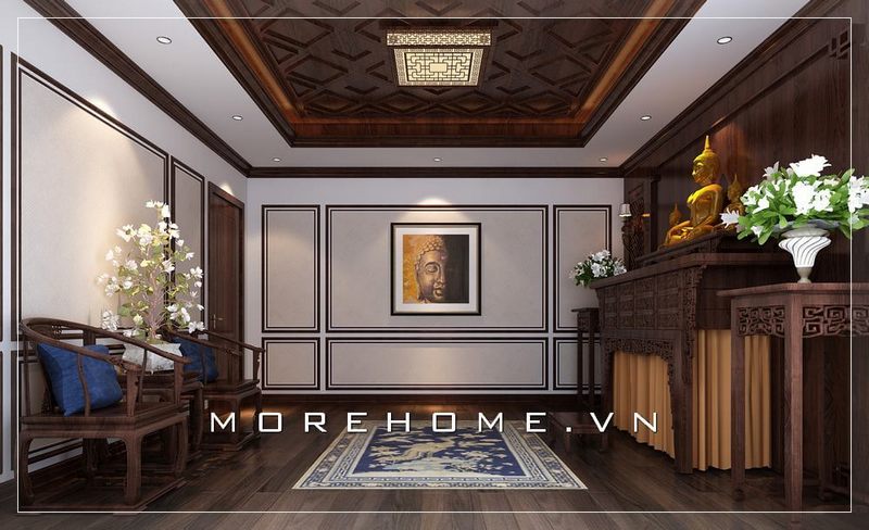 Thiết kế nội thất gỗ cao cấp cho phòng thờ phật nhà phố hiện đại