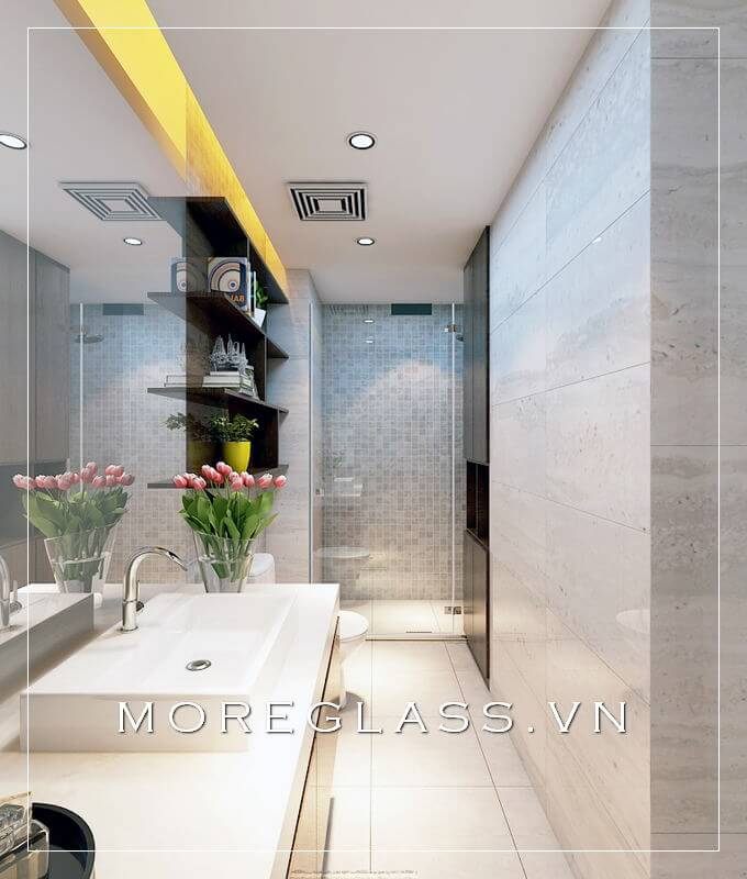 Vách tắm kính 135 độ cho phòng tắm hiện đại