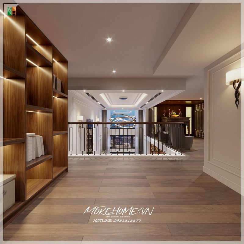 Trang trí nội thất phòng khách biệt thự ấn tượng, đồ gỗ nội thất được bố trí hợp lí, mang lại cho gia chủ một không gian sang trọng đầy tiện nghi