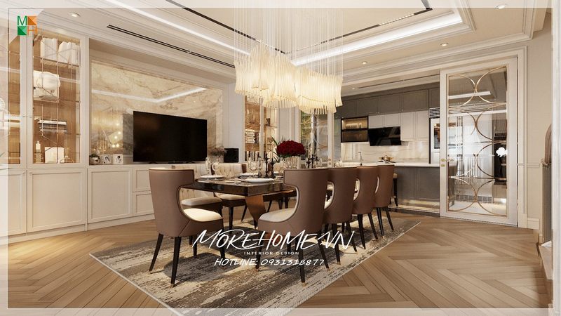 Thiết kế nội thất phòng ăn liền bếp hiện đại, tiện nghi cho nhà biệt thự