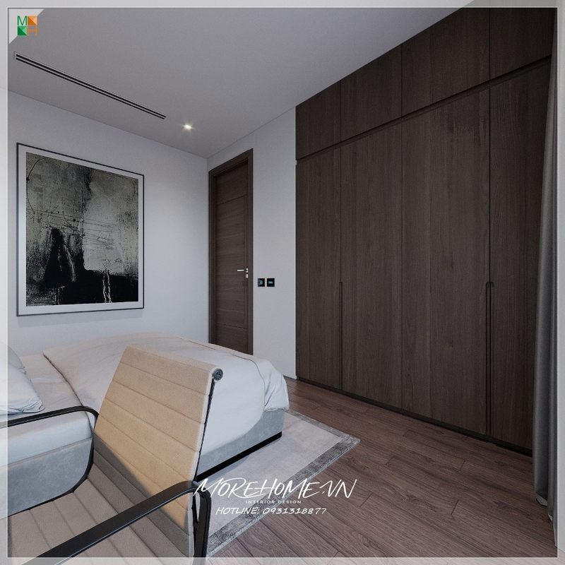 Hạn chế được sự trật hẹp, tiết kiệm được diện tích căn phòng ngủ bằng việc sử dụng thiết kế tủ quần áo âm tường mang lại sự hiện đại gọn gàng ngăn nắp cho căn phòng ngủ